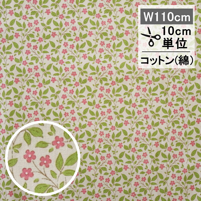 ティルダ 生地 ティプシー クリーム ピンク Tilda ファブリック tipsy 110cm巾 10cm単位 布 手芸 かわいい おしゃれ 小さい柄 花柄 小花 緑 北欧