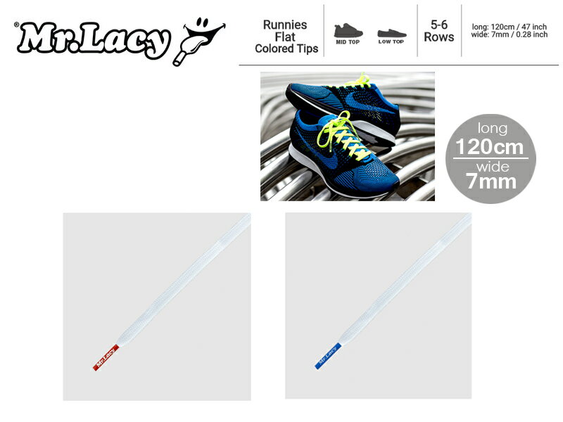 ☆Mr.Lacy【ミスターレーシー】RUNNIES LF FLAT TIPS SHOELACES ランニーズ フラット ティップス シューレース 120cm 11983 靴ひも 靴紐 くつひも ランニング【メール便対応】