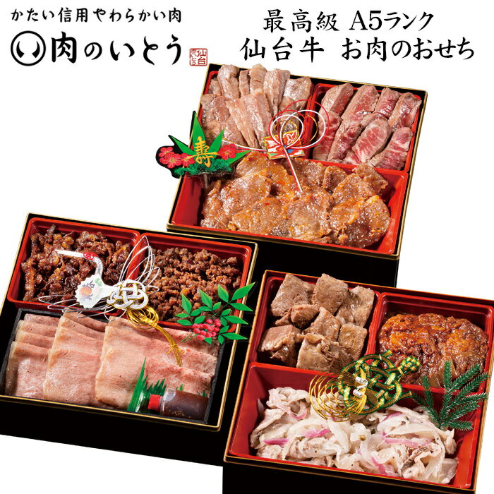 《合計ポイント9倍!ブラックフライデー 11/25まで》「肉のいとう」最高級A5ランク 仙台牛 お肉のおせち料理 三段重 2026 5人前〜7人前(9品・重箱付き・冷凍)送料無料[美食サークル]