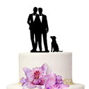 YAMI COCU ゲイ ウェディングケーキトッパー ミスター&ミスター ケーキトッパー 犬付き ブラックカラー アクリル シルエット 結婚記念日 パーティー 婚約 YAMI COCU Gay Wedding Cake Topper, Mr & Mr Cake Topper With Dog Black Color Acry