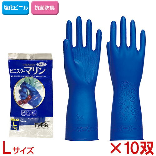 【あす楽対応】TOWA(東和コーポレーション) ビニスターマリン うす手 Lサイズ ブルー 10双 No.774