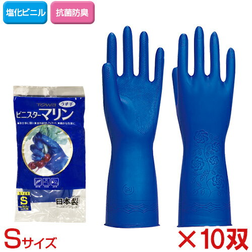 【あす楽対応】TOWA(東和コーポレーション) ビニスターマリン うす手 Sサイズ ブルー 10双 No.774