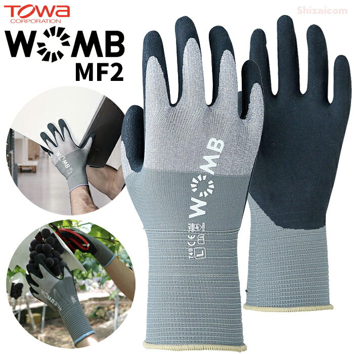 TOWA 740 WOBM-MF2 グレー 【10双入・お得な20双入・30双入・40双入・50双入】 抜群のフィット感&通気性を誇る手の平天然ゴムコーティング手袋 作業手袋 袖口ロング スベリ止め手袋 天然ゴム手袋 背抜き手袋 トーワ rev
