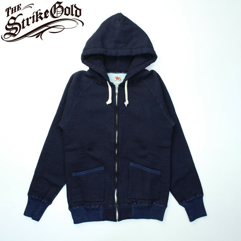 ストライクゴールド 先染め インディゴ 吊り編み フルZIP スウェット パーカ SGC2402 / The Strike Gold Indigo yarn dyed LoopWheel Full Zip Sweat Parka Hoodie