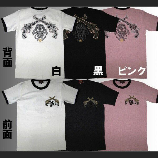 【ポイント10倍】【NATIVE GANG FAMILY】TribalSkull 刺繍入り 半袖Tシャツ 『ピストル』 NGF-28