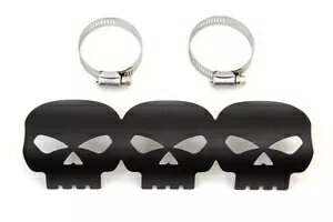 2-1/4 インチ排気パイプ用 9 インチ ブラック トライバル スカル ヒート シールド ハーレー ボバー チョッパー 9" BLACK TRIBAL SKULL HEAT SHIELD FOR 2-1/4" EXHAUST PIPES HARLEY BOBBER CHOPPER