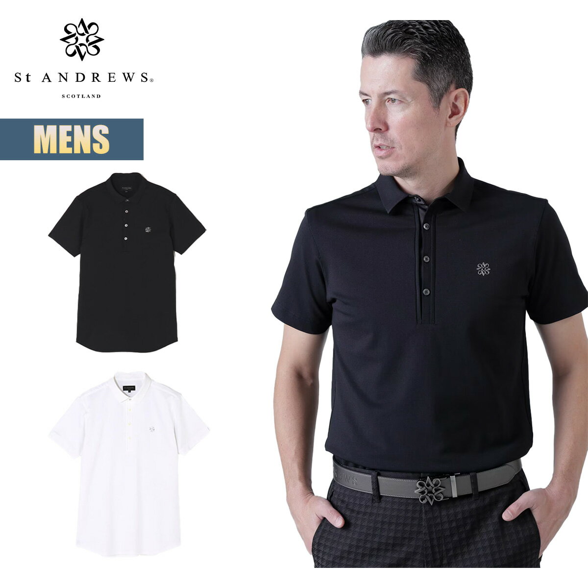 【楽天スーパーSALE P10倍】St ANDREWS シャツ メンズ セントアンドリュース ナイロントリコット半袖シャツ ゴルフウェア ストレッチ素材 ゴルフトップス 通気性 型崩れしにくい ブラック ホワイト シンプル スポーツ 042-4160201 2024 春夏 SS 正規品