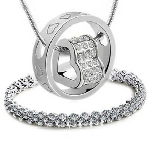 【送料無料】アクセサリー ネックレスシルバーハートチェーンスワロフスキーハートブレスレットセットチェーンcadena corazn de plata swarovski cristal set corazn cadena pulsera estuche de regalo jo