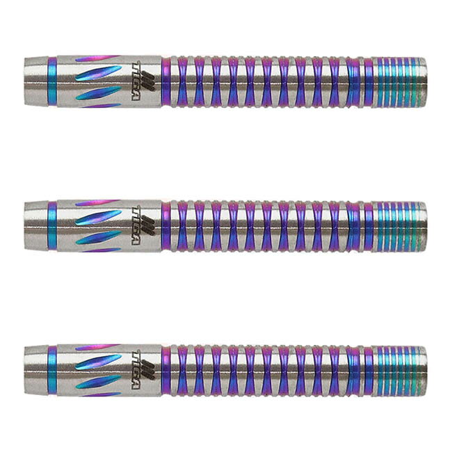 TIGA 90% Tungsten TIGER FLY 2BA ※ご覧頂いているディスプレイの設定等により、実物と色合いが異なる場合がございます。※この画像はDarts HiVeが作成しており、文章・写真などの複製、無断転載を禁じます。※内容物・商品仕様は予告なく変更となる場合がございます。 ■商品仕様 スペックデータ 材質 セット重量 単体重量 全長 最大径 タイプ :90%タングステン :約20.0g :18.5g :48.0mm :6.4mm :2BA 内容物 ・バレル ・シャフト ・チップ ・フライト ×1set(3個) ×1set(3個) ×1set(3個) ×1set(3個) ■商品説明 2017.11.30 発売商品 TIGAタングステン90%バレルシリーズで好評を博した「LION FLY」の系譜を継ぐ新作「TIGER FLY」が誕生。 HELICAL(螺旋)カットが生み出す極限のグリップ感を更に生かすため、最大径を0.4mm、重量を1.5g 追加した、スティールユーザーも納得のロングバレルに進化させました。 18.5gの重量感は鋭さに変わり、6.4mmの最大径はリリース時の力を余すことなくバレルに伝えてくれます。 グリップ部を広く配置することにより、多様なグリップスタイルに対応しています。 癖のないストレート形状と、グリップスタイルの自由さ、バランスを整えるHELICALカットの洗練されたコラボレーションが完成。 鮮やかなカラーグラデーションと、HELICALカットのマッチングは見る者を魅了します。 ■ご注文前に必ずご確認下さい 【仕様・付属品に関して】 ※カット部のカラーは焼付けの為個体差(ピンク・イエロー・パープル・ブルーに見える色合い)がございます。 同じセット内でも1本ごとに色合いが異なる場合がございます。ご了承のうえご注文願います。 ※商品ページ掲載の商品仕様や、パッケージ・デザイン・付属品等は、予告無しに変更となる場合がございます。 予め、ご理解・ご了承の上、ご注文下さい。