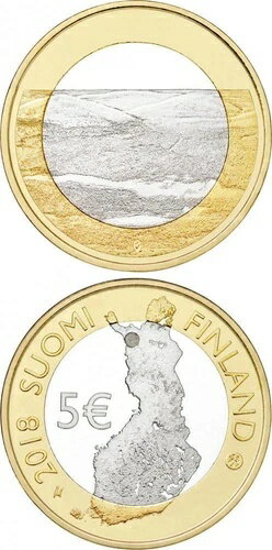 フィンランド 5ユーロ 2018「風景 - パラストゥントゥリ山脈」 UNC