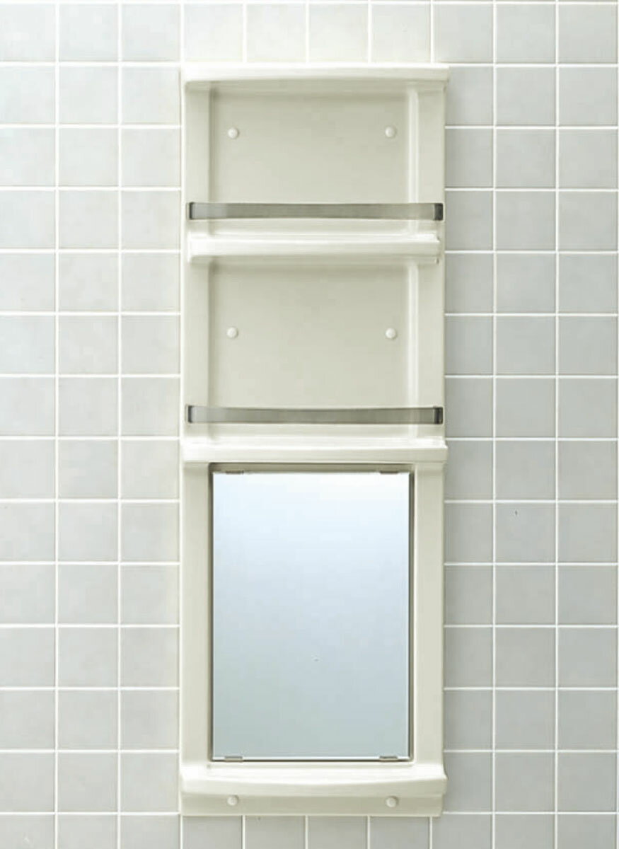 ●INAX/LIXIL【YR-412G】浴室収納棚 鏡付(平付) 落下防止バー付〔FA〕