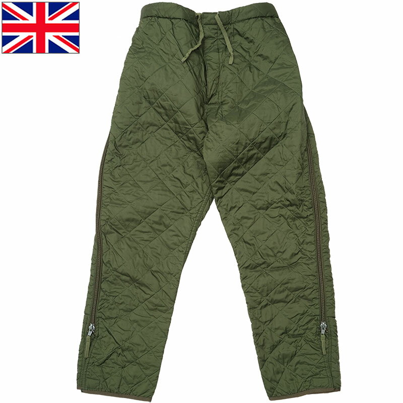 イギリス軍 キルティング ライナーパンツ グリーン USED PP421NN 英軍 UK ロイヤル 中綿入り 保温 防寒 軽量 ライニング ズボン 冬 メンズ 男性 レディース 女性 細身 タイト 実物ミリタリー 軍モノ 軍物