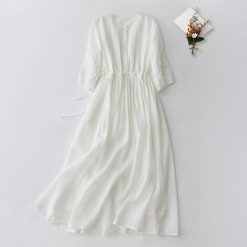 ワンピース エスニック Aラインワンピース ギャザーフレア ひざ下丈 ゆったり着やい シック エレガント 上品 大人かわいい ドライブ お食事 ママ友 レディース