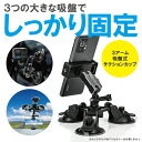 【ご注文前に必ずご確認下さい。】・自動車外への取り付けは日本国内では禁止されています。自動車の外に取り付けし、運転を行わないようにして下さい。・ホコリ、汚れ、凹凸、木目などのような表面が滑らかで平らではない場所でのご利用はできません。【商品特徴】・「アクションカメラやスマートフォンの3アーム吸盤式サクションカップ」は、アダプターマウント の仕組みを採用し、また吸盤を3つに増やし、安定性とホールド力を強化しました。・吸着可能な平面に取り付けて、カメラや対応機材を様々なシチュエーションに合わせて取り回しが可能な吸着サクションカップとなっています。【対応機種】・GoPro、DJI、Insta360などの各種アクションカメラ*ご利用になるには、カメラ側にGoProアダプターが必要になります。・各種スマートフォン *付属のスマートフォンホルダーをご利用下さい。【商品説明】・3つの大きな吸盤で固定するため安定した撮影が可能です。・角度調整可能で色々な角度で撮影ができます。・軽くて丈夫なABS製です。・簡単に取り付けや取り外しが可能です。・折りたたみ可能でコンパクトな持ち運びにも対応しております。【商品仕様】・重量:約221.2g・サイズ:約20 x 約60 x 約120mm・素材:ABS【商品内容】・Suction Cup Bracket x 1個・Adapter x 1個・ABS Phone Holder x 1個・Long Screw x 2個・Short Screw x 1個・Adapter for GoPro x 1個・Set of Long and Short Steering Rod x 1個【注意事項】※自動車外への取り付けは日本国内では禁止されています。自動車の外に取り付けし、運転を行わないようにして下さい。※ホコリ、汚れ、凹凸、木目などのような表面が滑らかで平らではない場所でのご利用はできません。※説明書は付属しません。※分解しないでください。※落としたり強い衝撃を与えないでください。※高温/多湿/火気近くで保管、使用しないでください。※輸入品につき、若干のスレキズ等がある場合がございます。※仕様は予告なく変更する場合がございます。※照明やモニターの明るさ/コントラストの設定などで、写真の色と実際の商品で若干の違いがございます。※本商品の使用については、全てお客様各位の責任において利用くださいませ。本商品を原因とする機器の破損、データの損失等、弊社では一切の責任を負いませんので、予めご了承くださいませ。【原産国】中国【発送予定について】1〜3営業日で出荷予定。在庫状況により出荷までお時間を頂く可能性がございます。【在庫状況について】※当店では、他モールとの共有在庫となっており、ご注文のタイミングによっては商品をご用意できない場合がございます。※ご用意できなかった場合につきましては、ご注文のキャンセル、または同等品のご提案をさせていただきますので、あらかじめご了承くださいませ。【おすすめ】・ちょっとしたプレゼント(ギフト)やポイント消化にご利用下さい。*プレゼント ギフト 誕生日 クリスマス 母の日 父の日 クリスマス ペア カップル 喜ぶ 人気*当店ではプレゼント(ギフト)梱包は行っておりません。予めご了承下さい。【関連用語】アクションカメラ アクセサリー ゴープロ アクセサリー スマホ アクセサリー マウント サクションバキュームカップ サクションカップ GoPro DJI Insta360 iPhone スマートフォン スマホ ホルダー 3アーム 吸盤式 車載 STARTRC 1110789 送料無料