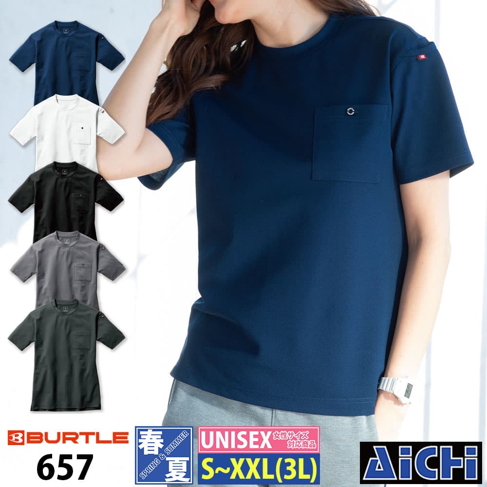 [メール便-送料無料] BURTLE バートル ニット 657 半袖 Tシャツ S 〜 XXL オールシーズン | ストレッチ ドライメッシュ鹿の子 UVカット 吸水速乾 消臭 レディース メンズ 小さいサイズ S M L XL XXL LL 3L