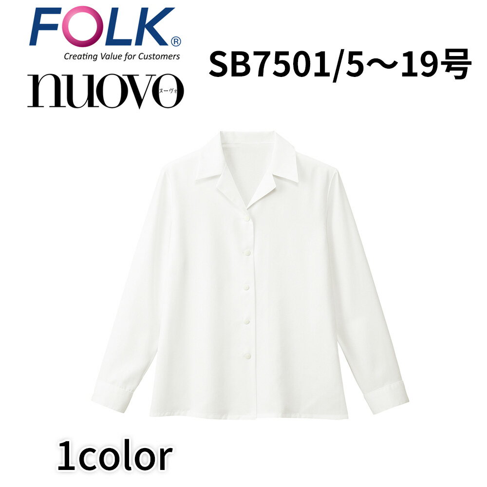 FOLK nuovo フォーク ヌーヴォ レディース 長袖ブラウス 白 ホワイト 事務服 オフィス ユニフォーム sb7501 メール便可1