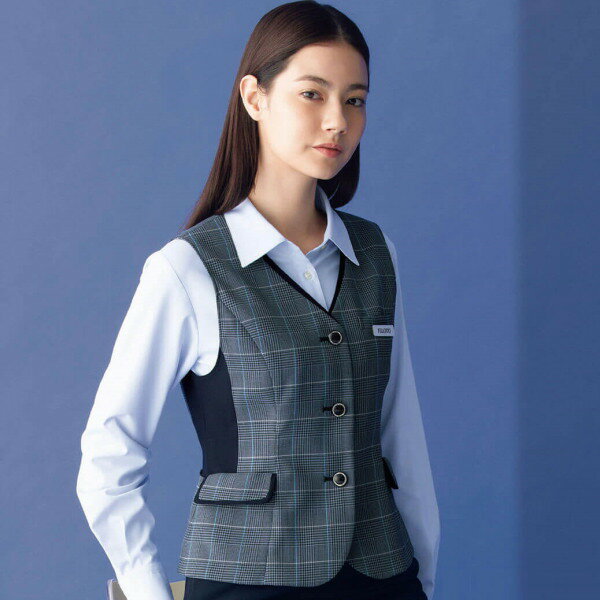 ・カラー :9ブラック ・素材 :レインボーウインドペングレンチェック ポリエステル78%・毛15%・レーヨン7% [特徴] ホームクリーニング 名札専用ミニポケット インク漏れ防止ポケット 印鑑ポケット タックでふんわり、腕がスッキリ見える効果も。 ※取り寄せ商品、在庫の有無と納期は後日連絡21号・23号はこちらから ■シリーズ関連商品■ オーバーブラウス FB71164 ベスト 春夏 FV36084