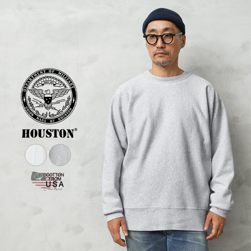 クーポンで最大18%OFF★HOUSTON ヒューストン 22177 U.S.コットン クルーネック スウェットシャツ【R】|メンズファッション アメカジ ミリタリー 裏起毛 USコットン ヴィンテージ カジュアル 無地 トレーナー トップス 秋 冬 ワークウェア