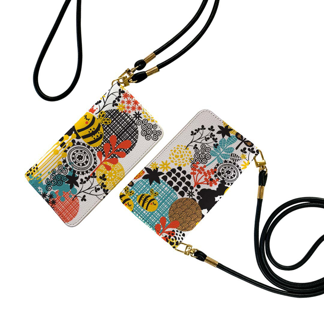 iPhone15plus 6.7 インチ 専用 各キャリア iPhone 15 plus 共通対応 ストラップ付き ケース ショルダー スマホ 落下防止 手帳型 マグネット式 ピタッと閉まる スマホカバー 肩掛け 斜めかけ 004865 蜂 キャラクター イラスト