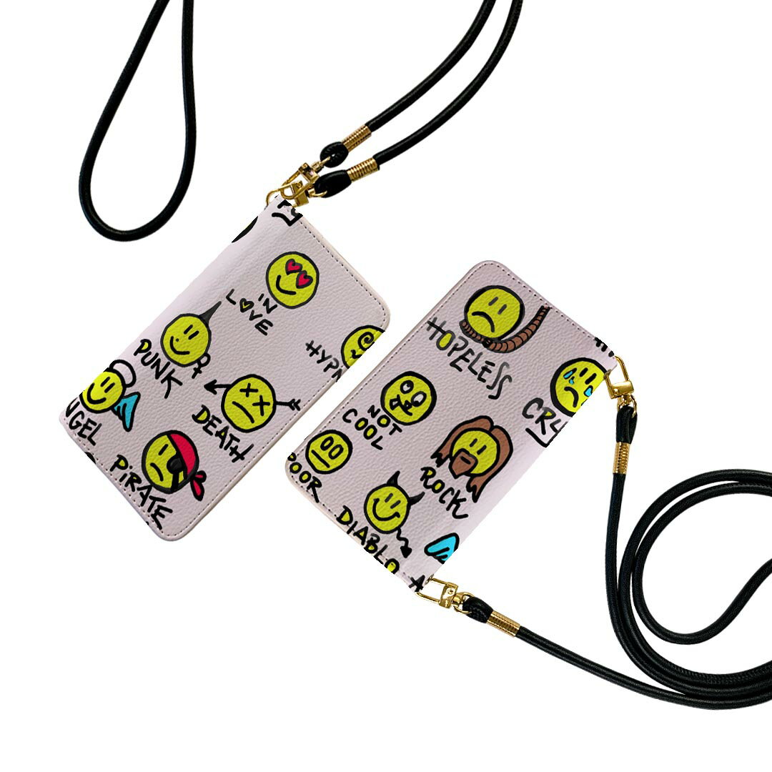 iPhone15plus 6.7 インチ 専用 各キャリア iPhone 15 plus 共通対応 ストラップ付き ケース ショルダー スマホ 落下防止 手帳型 マグネット式 ピタッと閉まる スマホカバー 肩掛け 斜めかけ 006105 スマイル アイコン イラスト