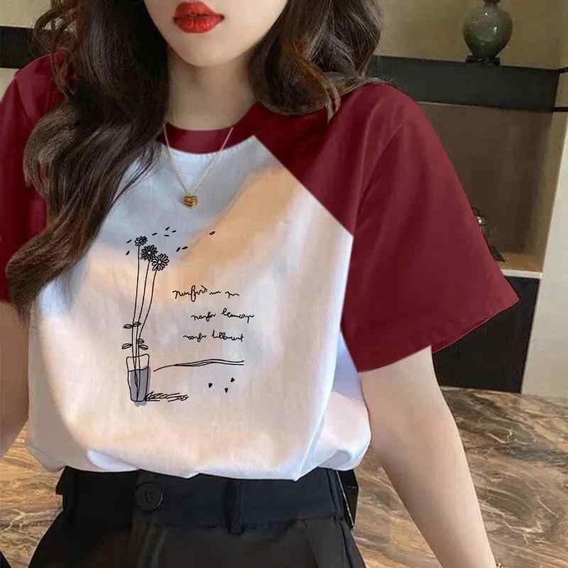 Tシャツ レディース 半袖 コットン 切り替え 春夏 ルーズ トップス カットソー カジュアル かわいい 韓国風 ブラック ピンク系 レッド ブルー グリーン 大きいサイズ