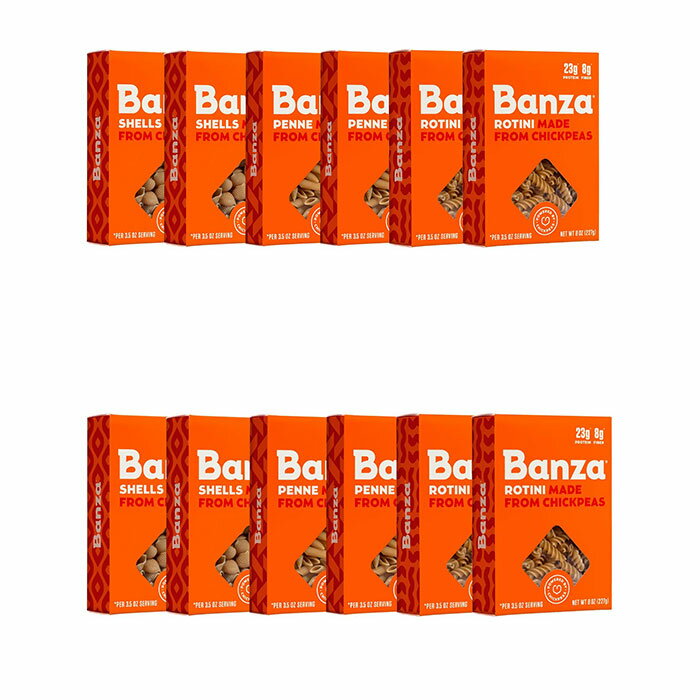 大容量! 3種類合計12箱入り・バンザ 3種類 グルテンフリーパスタ バラエティセット グルテンフリー・ビーガン・植物性 Banza Chickpea Pasta, Variety Pack (4 Penne/4 Rotini/4 Shells) - Gluten Free Healthy Pasta, High Protein, Lower Carb and Non-GMO 8oz