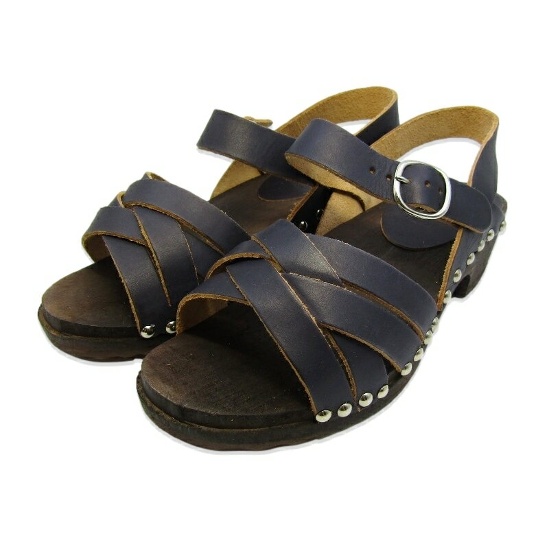 【中古】未使用 BOSABO ボサボ 37 ウッドサンダル 212-288AR フランス製 レディース VEGETAL ヒール ネイビー サンダル 18000700