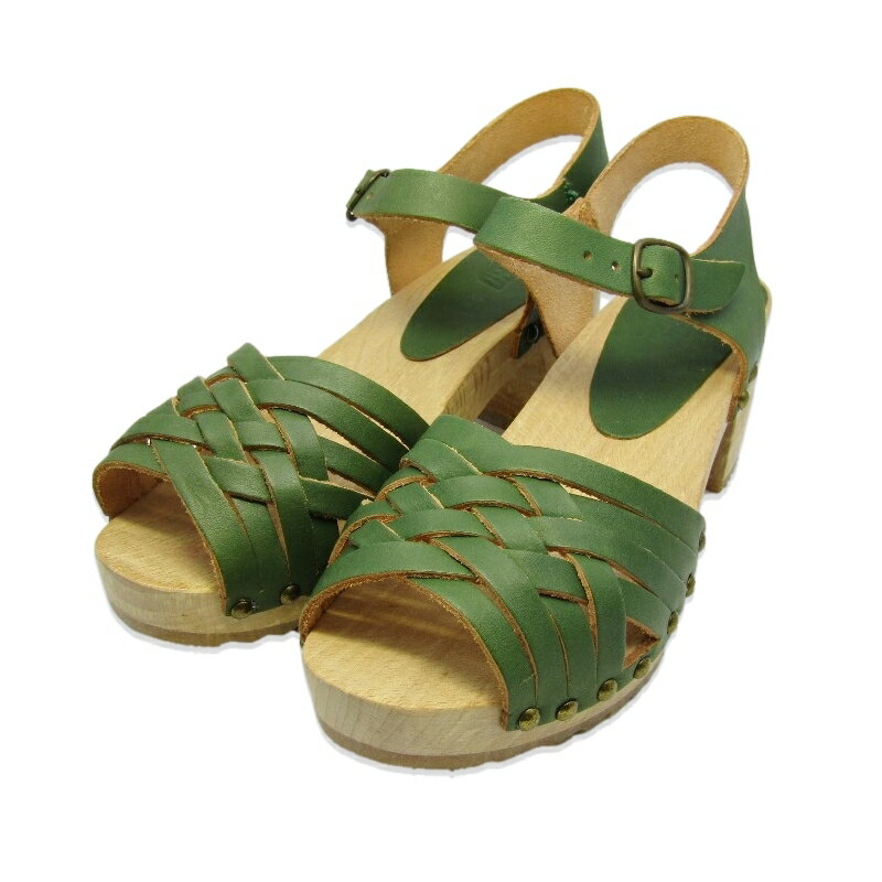 【中古】未使用 BOSABO ボサボ 37 ウッドサンダル 268-109BR フランス製 レディース VEGETAL ヒール グリーン サンダル 18000701