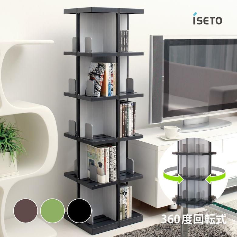 【商品説明】観たいとき、読みたいとき、聴きたいときに出し入れ簡単な回転式ラック。シックで落ち着いたカラーがディスプレイ棚に最適。また、狭いスペースに便利な回転式。【特長】●DEVIC意匠登録第1247176号●大容量で効率的な360°回転タイプ壁面に据え置く通常の棚に比べ、設置面積が少なく、しかも大容量●スライド式ストッパーつき●棚板1枚あたりの耐荷重約20kg●コミック約200冊(厚さ1.4cm目安)・ビデオ (VHSテープ)約120本・DVD約200枚(厚さ1.5cm目安)・CD約300枚(厚さ1cm目安)【サイズ】●(約)W353×D313×H1240mm【材質】●天板・棚板・ベース台・回転板 ・仕切板 大・小:スチロール樹脂●スライド式ストッパー・上下ストッパー:ポリプロピレン●回転コマ:ナイロン●すべり止めキャップ:ポリエチレン●ネジ:スチール【種類】●ブラウン I-486|4966149486104●グリーン I-486|4966149486111●ブラック I-486|4966149486128[伊勢藤 iseto 大容量 収納 雑誌 コミック 漫画 ビデオ VHS CD DVD 書斎 インテリア タワー型 省スペース 狭いスペース 収納ラック ディスプレイ リビング・デスク周辺収納 片付け 整理整頓 シンプルデザイン 機能的 便利]関連商品[10月エントリーでP10倍!] iseto デビック 3段 I-48...[10月エントリーでP10倍!] 浅香工業 棚 ニューファンシーラック...[10月エントリーでP10倍!] collend コレンド ワイヤーバ...5,980円7,760円9,160円[10月エントリーでP10倍!] 浅香工業 棚 ニューファンシーラック...[10月エントリーでP10倍!] collend コレンド ワイヤーバ...[10月エントリーでP10倍!] 浅香工業 棚 ニューファンシーラック...6,890円6,380円9,870円[10月エントリーでP10倍!] collend コレンド スリムラッ...[10月エントリーでP10倍!] 浅香工業 棚 ニューファンシーラック...[10月エントリーでP10倍!] 東谷 LFS-882BK ハンガー ...9,680円6,360円8,130円
