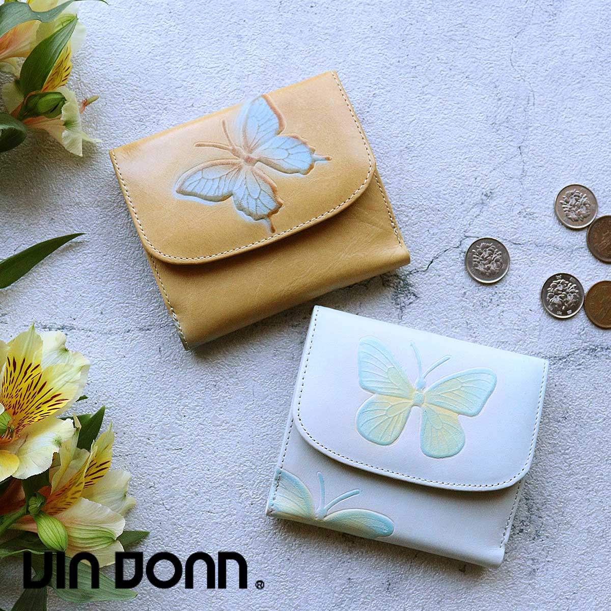 □ブランドVIA DOAN(ヴィアドアン) □シリーズDOLCE(ドルチェ) □本体素材牛革(イタリア製)蝶型押し) □付属素材牛革(日本製) □裏地素材・ベージュ:コットン・アクアイエロー:レーヨン □サイズ約W11×H10×D2cm □重さ約73g □生産国日本 □ポケット ・ボックス型小銭入れ×1・カードポケット×6・フリーポケット×2・札入れ×1 □カラー ・ベージュ(42)・アクアイエロー(65) About Item ヒラヒラと舞う蝶々が素敵なお財布シリーズ 上質なイタリア製の牛革に蝶の型押しを施したドルチェシリーズ。オーダーメイドの一点もののように、それぞれ違う蝶が美しく舞う華やかなデザインになっています。 コンパクトなデザインの2折財布。正面はボックス型の小銭入れになっています。大きく開くので小銭が出し入れしやすくとっても便利。内側収納はスナップボタン開閉。カード収納は6枚分。フリーポケットが2か所と札入れが1か所。小さいながらもとっても機能的。旅行の際のセカンドウォレットとして、また小さなバッグを使う時にもおすすめです。ベージュはアンティーク調の金具を使用し、アクアイエローはゴールドの金具を使用しています。イタリアのタンナーと国内職人の腕が光るロングセラーのシリーズ。蝶の種類は様々。商品の一つ一つの柄が異なり、世界に一つしかない柄のお財布になります。※素材の質感は個体差がございます。また、蝶の種類や配置は1点1点異なります。指定できませんので予めご了承ください。 ATTENTION 天然皮革のため、元々の皮にあるシワや傷、シミ等はどうしても避けられません。余計な加工をしていない証でもあり革本来の風合いを感じて頂けます。発送前には1つ1つ検品を行っております。多少の傷やシミ等は良品と判断しておりますのでご了解頂きますようお願いいたします。天然皮革は使い込むほどに馴染んで味わい深いものになります。どうぞ経年変化もお楽しみください。 また、現在の染色技術では、天然皮革の多少の色落ちは避けられません。出来るだけ自然のままの素材を使用したいと考えていますので、商品によっては多少の色むらや傷などが出ているものもありますが、不良品ではございませんのであらかじめご了承願います。 お色について 商品の画像はできる限り現物に近い色になるよう撮影しておりますが、お使いのモニターやブラウザのカラー設定により誤差が生じてしまう場合がございます。予めご了承ください。 MADE IN JAPAN 大量生産ができなくても、 日本生産のこだわりを届けたい ヴィアドアンは良質な素材を国内外から厳選し 日本の職人の手で作られる、女性のためのブランドです。 DOLCE ドルチェ 女性の心を掴んで離さない個性的で華やかな蝶をあしらったデザインが魅力のドルチェ。リアルな型押しに職人が繊細な手仕事で色をのせたイタリアンレザーは、蝶があしらわれる位置も製品ごとにひとつひとつランダムなため、一期一会の特別な出会いを演出してくれます。 素材にはファッションの中心・ミラノからほど近いタンナーで仕上げられた牛革を使用。シリーズ誕生から根強く支持されてきたベージュと春風のように柔らかなアクアイエロー。魅力ある色合いはイタリアで何度も打ち合わせと試作を重ねて生み出されています。特殊な版型を使った型押しで革に凹凸をつけ、職人が絵画を描くように微妙な色加減の吹付けを数度行うことで、蝶がふわりと革から浮き上がってくるように見えるのが特徴です。 VIA DOAN(ヴィアドアン)DOLCE(ドルチェ)2折り財布 ボックス型小銭入れ付 イタリア製牛革 日本製 249 ヒラヒラと舞う蝶々が素敵なお財布シリーズ 上質なイタリア製の牛革に蝶の型押しを施したドルチェシリーズ。オーダーメイドの一点もののように、それぞれ違う蝶が美しく舞う華やかなデザインになっています。 ■color ■detail イタリアのタンナーと国内職人の腕が光るロングセラーのシリーズ。蝶の種類は様々。商品の一つ一つの柄が異なり、世界に一つしかない柄のお財布になります。 薄マチのコンパクトなデザインの2折財布。キャッシュレスに対応したミニ財布。 正面はボックス型の小銭入れになっています。大きく開くので小銭が出し入れしやすくとっても便利。 内側収納はスナップボタン開閉。カード収納は6枚分。フリーポケットが2か所。 札入れは1カ所。小さいながらもとっても機能的。旅行の際のセカンドウォレットとして、また小さなバッグを使う時にもおすすめです。 シリーズ誕生から根強く支持されてきたベージュと春風のように柔らかなアクアイエローの2色展開です。 ■spec □ブランドVIA DOAN(ヴィアドアン) □シリーズDOLCE(ドルチェ) □本体素材牛革(イタリア製)蝶型押し) □付属素材牛革(日本製) □裏地素材・ベージュ:コットン・アクアイエロー:レーヨン □サイズ約W11×H10×D2cm □重さ約73g □生産国日本 □ポケット ・ボックス型小銭入れ×1・カードポケット×6・フリーポケット×2・札入れ×1 □カラー ・ベージュ(42)・アクアイエ