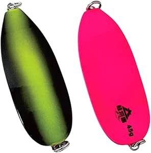 求めたのは、「ほぼ止水」といえるような状況下でのアピール力 鮭男爵は誰にも負けない飛距離が出し易く、早い潮流に負けることなく泳ぎ、浮きにくいルアー。河口域など潮流が早く、風や波があるフィールドでは、鮭男爵は無双となる。一方、新たに発売される『鮭将軍』は、凪状態の漁港など、ほぼ止水のような状況下にて超デッドスローで引いても確実に水を捉えて動き、水流の受けと抜けがバランスよく入るため、イレギュラーな回転もこなし、アピールし続けられるスプーンを目指しました。ボディに絶妙に計算された反りを持たせ、スプーンの軸をずらして泳ぎの幅をワイドにし、タコベイトの動きをよりダイナミックに演出。またそれによって生じる引き抵抗は、アングラーがルアーの状況を把握しやすくしてくれる。これは幅広いシチュエーションで体感しやすく、アングラーのモチベーション維持にも貢献。鮭男爵と鮭将軍を使い分けることによって、フィールドでの死角はもう残っておりません。 限定カラー 全長:75mm 自重:45g