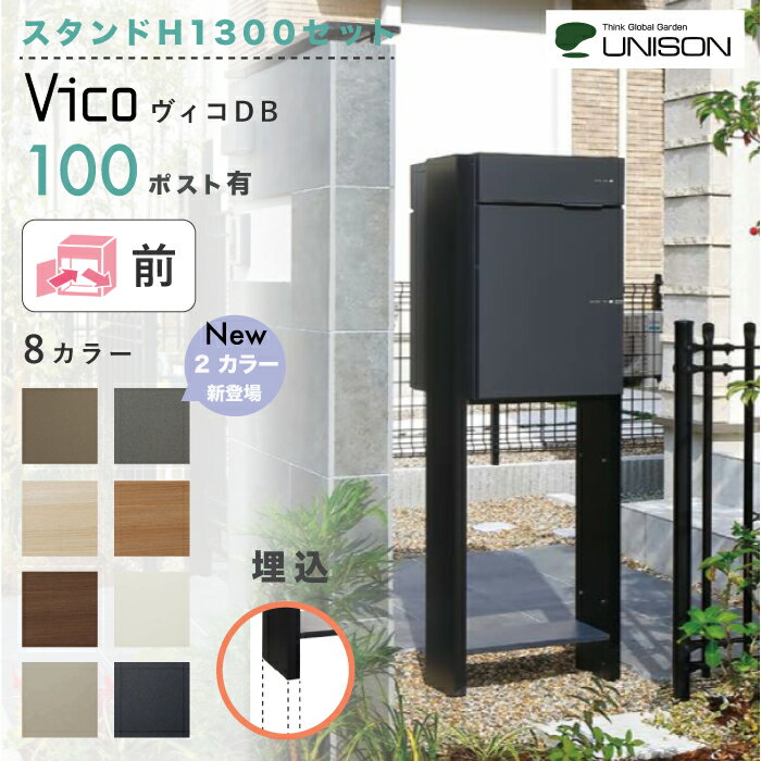 [新色登場! 埋込スタンド H1300セット] UNISON 宅配ポスト ヴィコ DB100 ポスト有り 前出し 左開きタイプ/右開きタイプ 専用スタンド H1300 埋込タイプ ユニソン vico 宅配ボックス 100サイズ 前入れ 前出し ポール建て 宅配box おしゃれ ヴィコDB 送料無料
