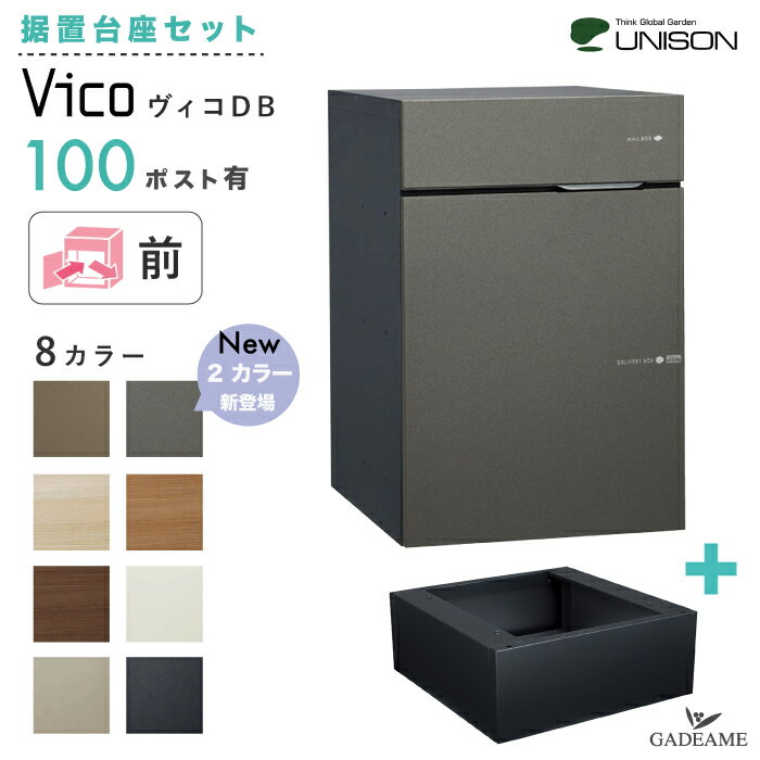 【新色登場!据置き台座セット】 UNISON 宅配ポスト ヴィコ DB100 ポスト有り 前出し 左開きタイプ/右開きタイプ ユニソン vico 宅配ボックス 100サイズ 前入れ 前出し レンガ 簡易施工 DIY 据置 木目調 ポール建 宅配box おしゃれ デザイン 後付け 送料無料