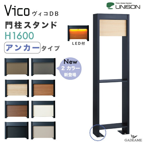 【新色登場】ヴィコDB 門柱スタンド H1600 アンカータイプ LED照明 トランス付属 宅配ボックス Vico DB オプション【UNISON ユニソン】ヴィコ DB 100/60+80/120/スリム90/スリム100 対応 ポール 宅配ポスト 郵便ポスト メール便 おしゃれ お洒落 送料無料