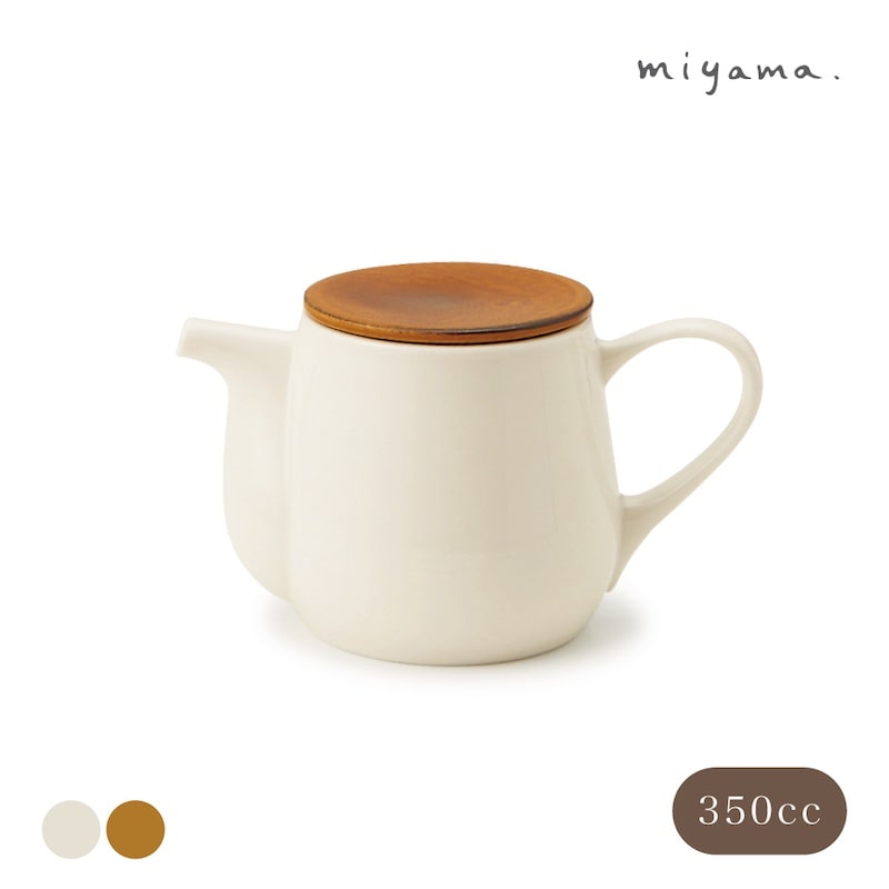 【日本製】 miyama 深山陶器 急須 bico ビコ バニラホワイト / カラメルブラウン W125×D155×H100mm(350ml) 【食器洗浄機対応】【電子レンジ対応】