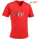 VIOLA rumore ヴィオラ ビオラ Tシャツ Vネック ラインストーン ロゴ メンズ 半袖Tシャツ mens(レッド赤) 42333