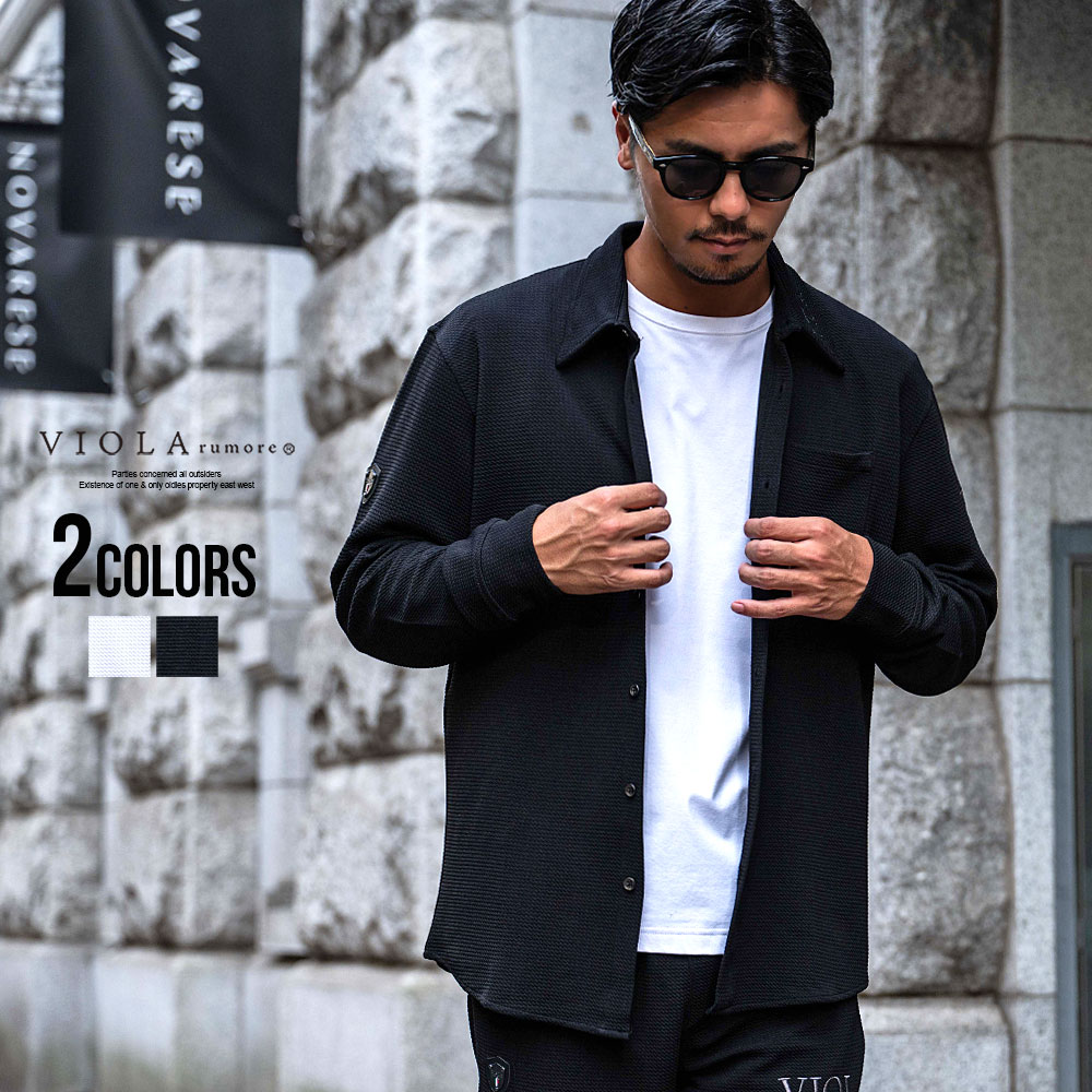【送料無料】シャツ メンズ 長袖 長袖シャツ VIOLA ヴィオラ ビオラ ブランド おしゃれ トップス ゴルフ ロゴ 刺繍 エンブレム 細身 スリム タイト ストレッチ シンプル 大人 上下 セットアップ可 ホワイト ブラック 白 黒 M L XL 服 男 20代 30代 40代 50代 春 夏 秋 冬