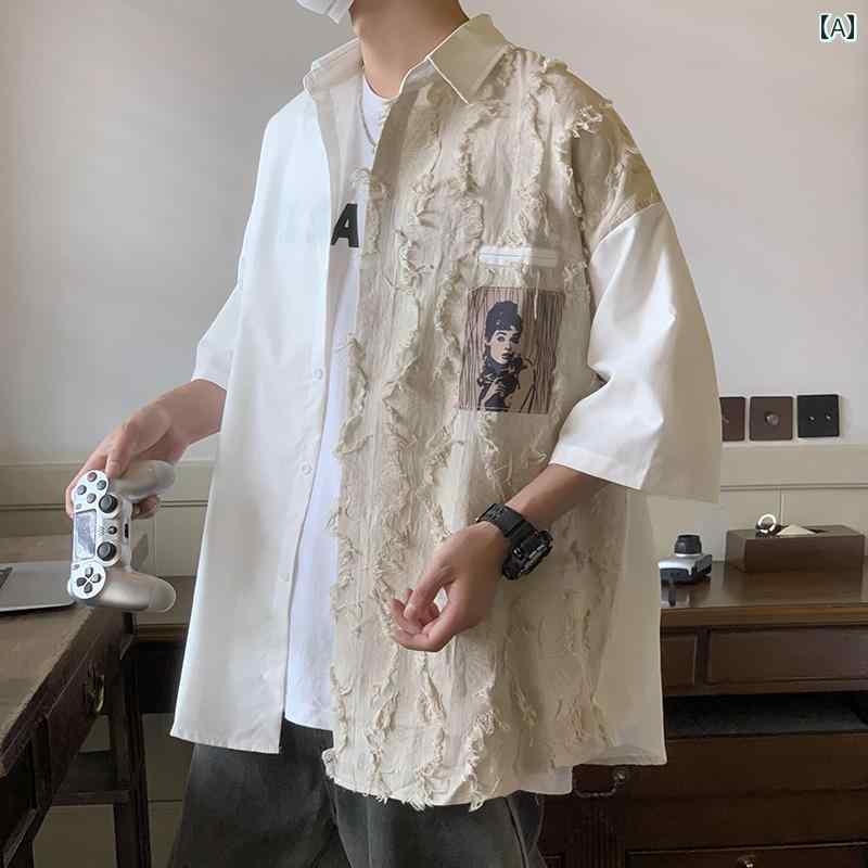 メンズ ファッション 春 夏 秋 冬 かっこいい オシャレ モテ 男性用 紳士服 服 韓国 シンプル 大人 夏 和風 半袖 シャツ メンズ パッチワーク ワークシャツ
