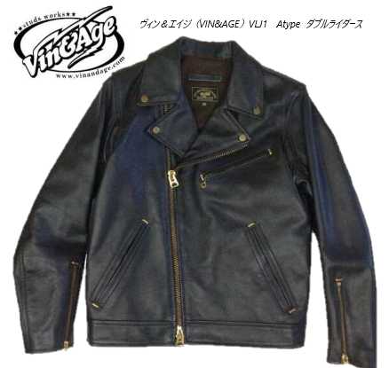 ヴィン&エイジ(VIN&AGE)VLJ1 Aタイプ ダブルライダース・レザージャケット・真鍮ドーム型NAVY 【送料無料】