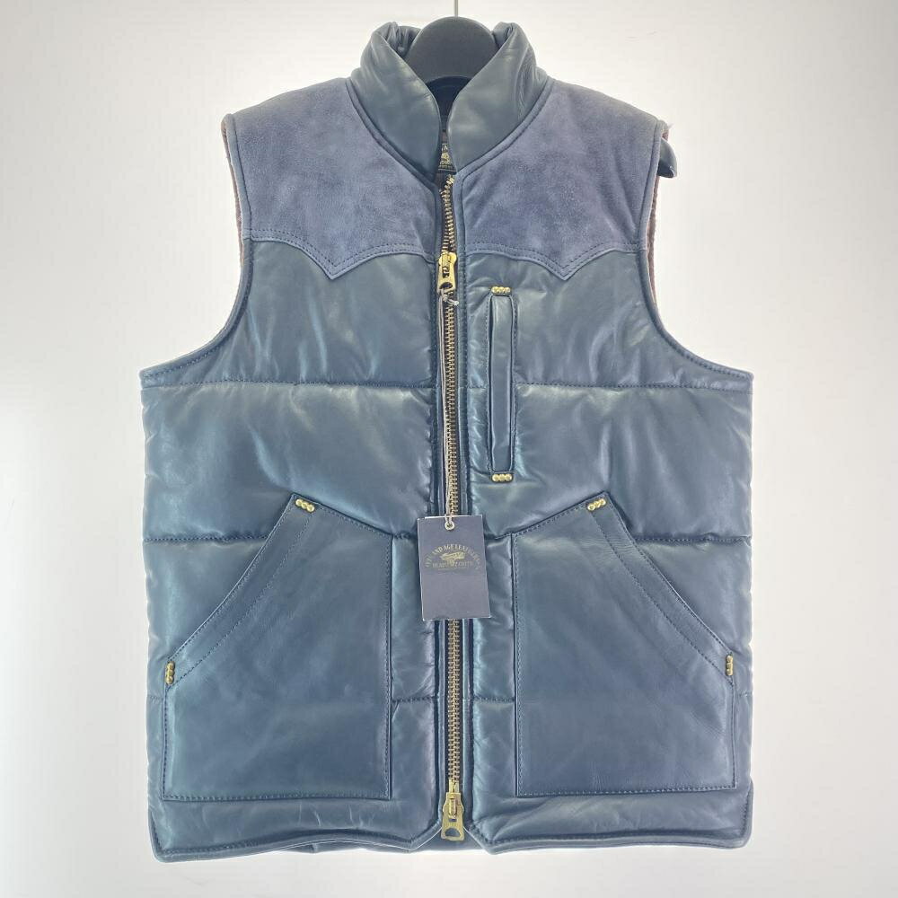【中古】Vin&Age LEATHER VEST TYPE VLJ2 サイズ38 ブラック×ネイビー ヴィンアンドエイジ[17]