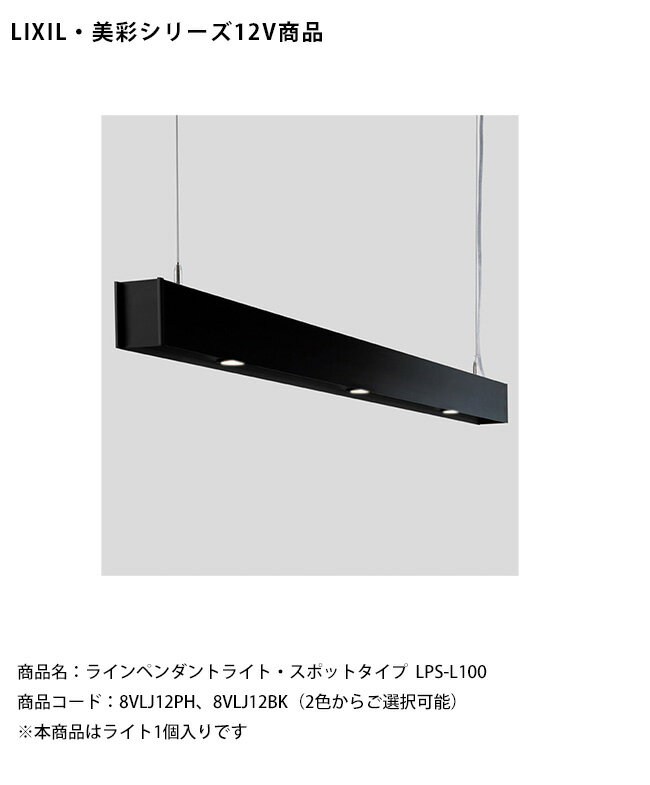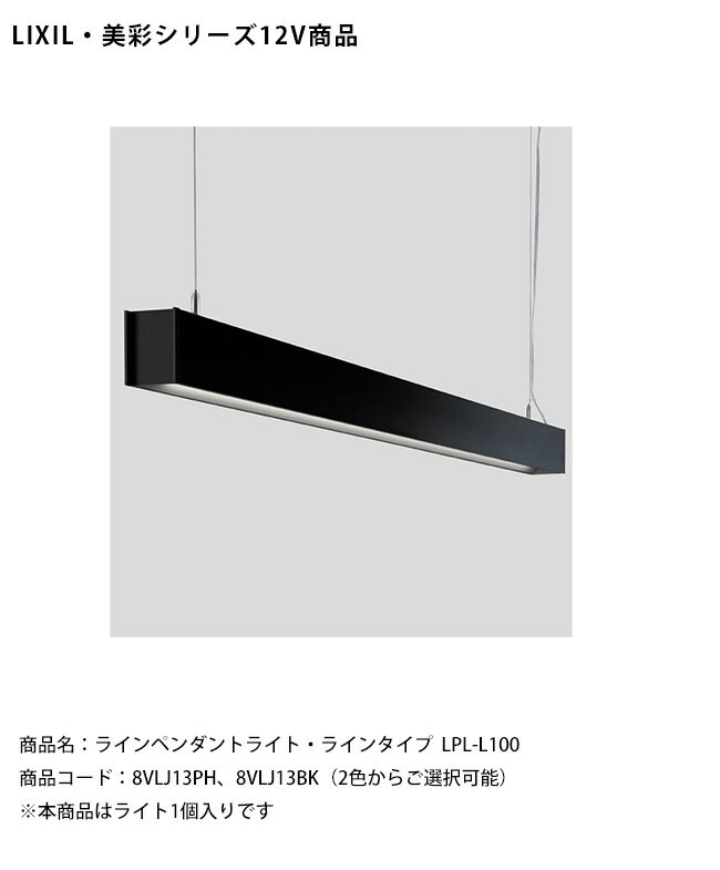 【LIXIL美彩12V照明】ラインペンダントライト・ラインタイプ LPL-L100 /消費電力:10.5W 器具光束:下配光 705lm/商品コード:8VLJ13PH、8VLJ13BK ※本商品はライト1個入りです【リクシル LED屋外照明 ガーデンルーム アウトドアリビング】