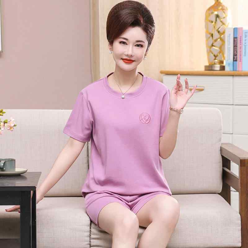 ルームウェア レディース ミセス 夏 サマー パジャマ 女性用 半袖 ショートパンツ 短パン 綿 コットン ゆったり 薄手 シンプル 丸首 プルオーバー 上下セット リラックス 部屋着 寝間着 高級感