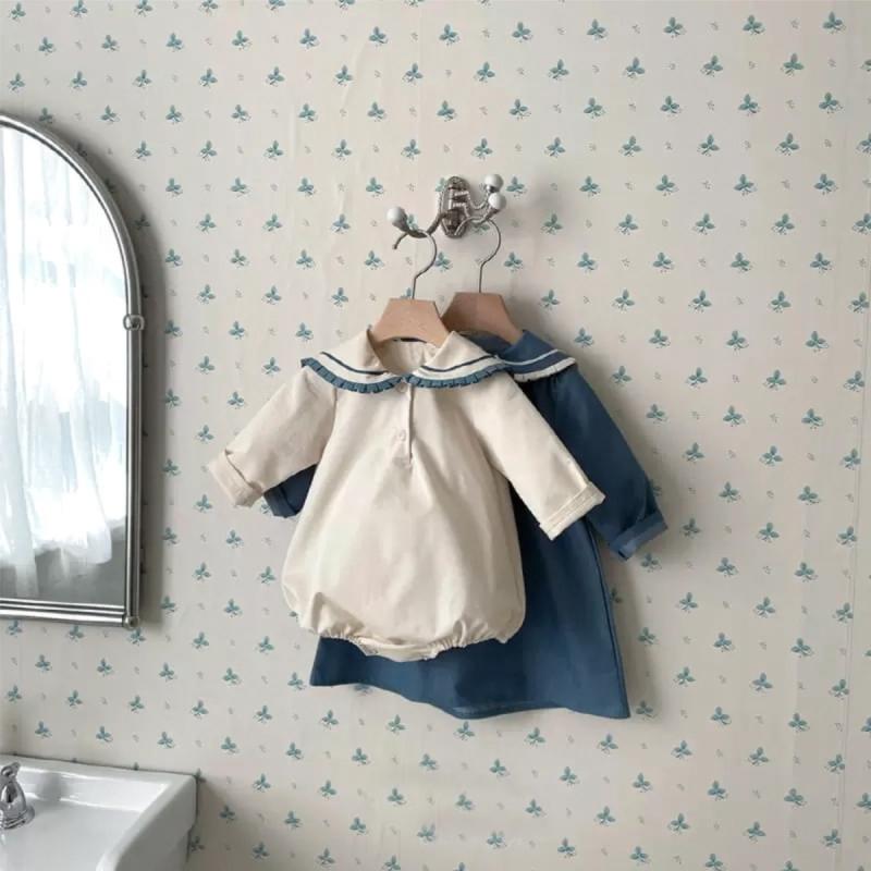 ロンパース ベビー 女の子 新生児 綿 長袖 フリル襟 学院風 スクールスタイル オールインワン カバーオール ボディスーツ 肌に優しい 普段使い お出かけ着 秋 春秋 韓国 ブルー ベージュ スナップボタン