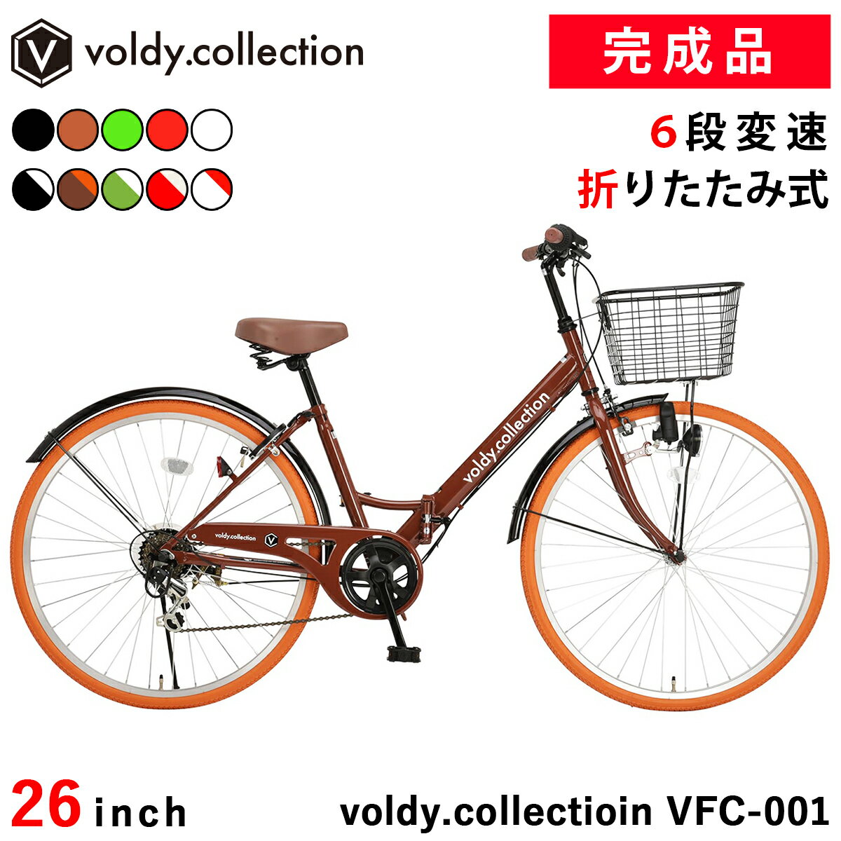 折りたたみ自転車 26インチ シティサイクル 完成品 組立済【指定エリア送料無料】 シマノ6段変速 中学生 ママチャリ 女の子 男の子 通勤 通学 街乗り おしゃれ カゴ・ダイナモライト・後輪錠・極厚チューブ ボルディ voldy.collection VFC-001/VFC-001CT