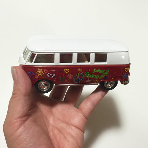 ワーゲン バス ミニ ミニカー ラブ&ピース〈イエロー/レッド/グリーン/ブラウン〉【ハワイアン雑貨】【リゾート雑貨】ワーゲン クラッシック バス プルバックカー LOVE&PEACE Volkswagen bus