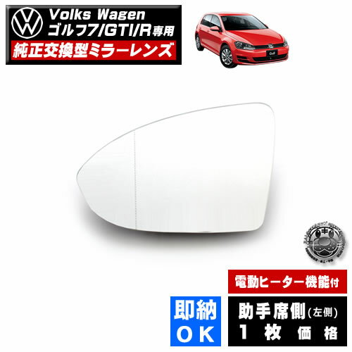 ドアミラー レンズ フォルクスワーゲン ゴルフ 7 GTI R 対応 【Volks Wagen 社外品 助手席側 左側 純正交換型 電動ヒーター付 DIY サイドミラー ミラーレンズ ガラス 即納 在庫 破損時の修理 交換等に】 【エムトラ】