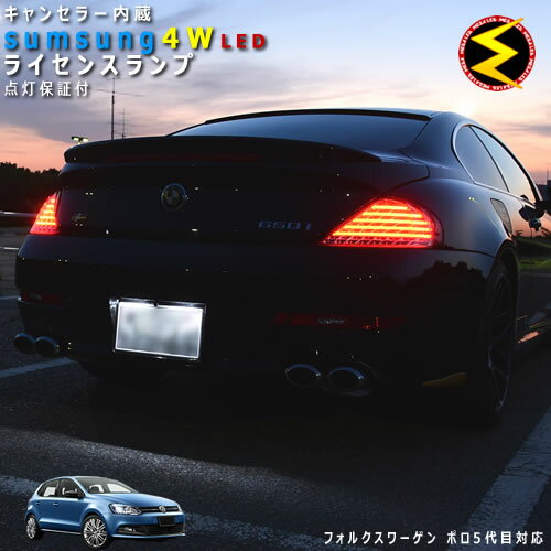 【保証付】フォルクスワーゲン ポロ 6RCGG 対応★LED仕様車除くキャンセラー内蔵 サムスン 4w SMD LED ナンバー灯 ライセンスランプ 2個1セット★発光色は ホワイト【Volks Wagen】【メール便可】【メガLED】【プレゼント】