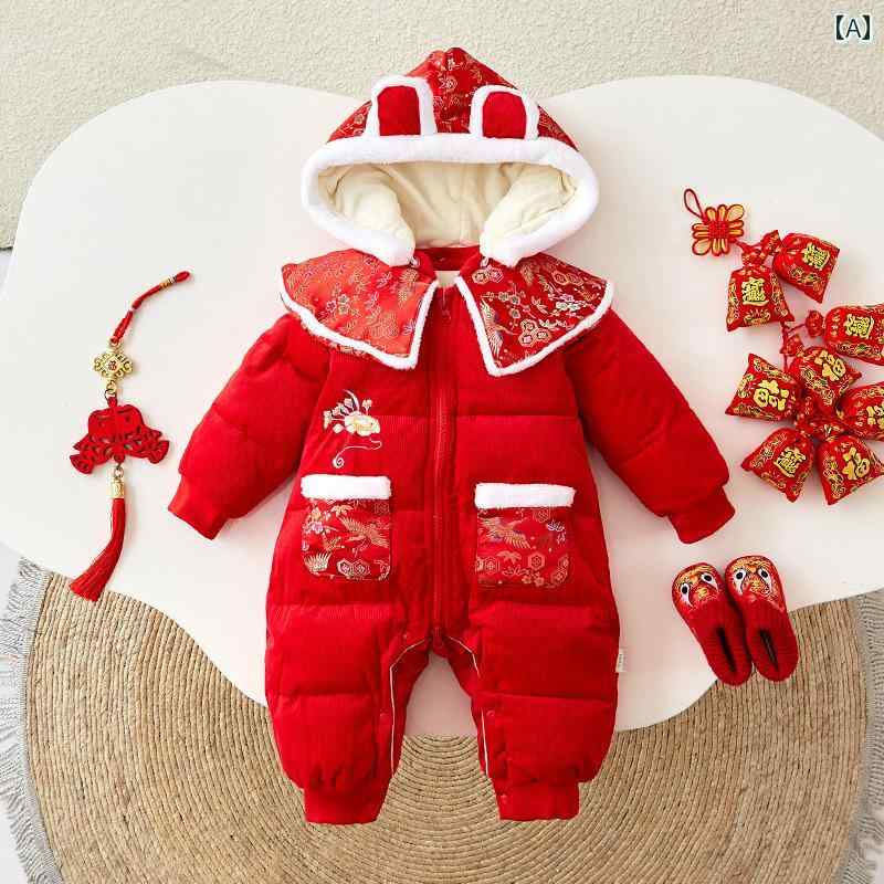 カバーオール ベビー服 長袖 ジャンプ スーツ 赤ちゃん 挨拶 スーツ 冬 キルティング 厚手 セット 新生児 生後1ヶ月 中華風 女児 赤ちゃん 正月