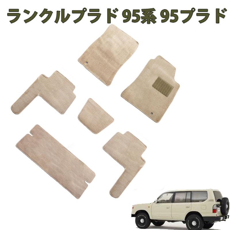 95プラド フロアマット ランドクルーザープラド ランクル KZJ95W VZJ95W KDJ95W RZJ95W 8人乗り専用】ベージュ カーマット カーペット 敷物 絨毯(ベージュ無地)1台分セット ヒールパッド