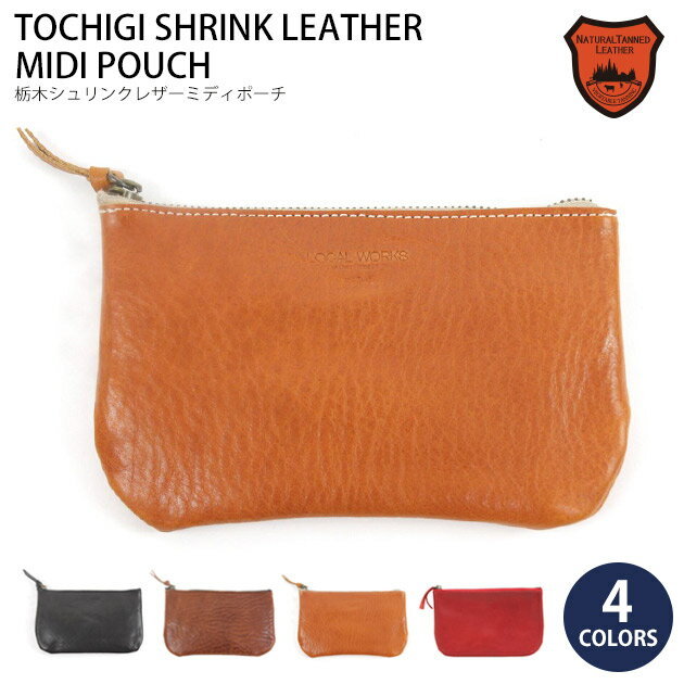大切な方へのプレゼントに最適なラッピングもご用意しております ご注文時にお買いものかごにてご選択ください 【商品発送のタイミング】 楽天バンク決済、銀行振込、⇒ご入金確認後、即日〜翌2営業日に発送いたします。 クレジットカード決済⇒ご注文確認後、即日〜翌2営業日発送致します。 ※代金引換便はご利用いただけません。 【クリックポスト便ご利用のお客様へ】 ◆お届け先地域にもよりますが、お届けに最長7日間ほどかかる場合がございます。 ◆盗難・紛失・破損等お届けに関する保障はございません。 ◆配送状況の追跡は可能でございます。 ◆配送先ご住所のお名前が確認できない場合やポストに入らない場合など 投函できない場合は持ち戻りとなります その為、ご自宅の新聞受け・ポストなどA4サイズの大きさのものが投函可能かご確認の上ご利用ください (集合住宅・マンションの場合はマンション名を省略せずに記載下さい 宛先不明で商品が戻ってきた場合は再度送料を頂戴致します) ◆【クリックポスト対応】商品を複数ご注文の場合、 クリックポストの規定内の大きさを超える場合はそれぞれ別便のクリックポスト便にて発送させていただきます その場合、それぞれ送料がかかりますことをご了承下さいませ”すべて日本生産” 栃木レザーの中でも希少な”厚口”の革を使用しています。裁断、縫製、型押し、仕上げなどの全工程が国内の信頼できる熟練職人 にのみ行われ、1つ1つ丹精込めて丁寧に作られています ヌメ革にシュリンク(縮める)加工を施した革。 艶のある光沢感が美しく、独特のシボがあり、柔らかく、傷も目立ちにくいのが特徴です。 同じ革でも部位によって風合いが異なるのも魅力です。 “ライフスタイルをより豊かにするレザープロダクト”をコンセプトに誕生したオリジナルブランド。 長年付き合いのある日本国内の職人に生産をお願いし、 最大限革の良さを活かし経年変化が楽しめる物作りを心掛けています。 LOCAL WORKSの製品には栃木レザー社が鞣した革、通称栃木レザーと ITALIA MONTANA社が鞣したイタリアンレザーを使用しています。 栃木レザーは風合いに格段の違いを感じた厚口のレザーを採用し、 そのレザーを使用したシュリンクレザーはマット加工を施した弊社別注のものを使用しています。 またイタリアンレザーは独特な存在感を感じられるアートビンテージ、 しなやかさや滑らかさが特徴のセコイアを使用。 使い込むほどにそれぞれ豊かな表情が育ちより愛着のあるものになります。 上品で色気がありながら、適度に遊びやトレンドを取り入れたデザインで、 日々の生活にとけこむレザープロダクトをリーズナブルに展開していきます。 シンプルで普遍的なデザインのプロダクトは年代、性別問わず幅広い方におすすめです。 LOCAL WORKSアイテム一覧はこちら>> 大切な方へのプレゼントに最適なラッピングもご用意しております ご注文時にお買いものかごにてご選択ください 商品名 LOCAL WORKS "TOCHIGI SHRINK LEATHER" MIDI POUCH "栃木シュリンクレザー オリジナル ミニポーチ " ---------------------------------------------------------------------------------------------------- 商品説明 国内最高峰タンナーとして名高い栃木レザーを贅沢に使用したミニポーチ 使い込むほどに色艶を増し、深みのある雰囲気を醸し出します。レザーならではの上品かつ確かな存在感溢れる、その無駄のないシンプルな デザインだからこそビジネスのシーンをはじめ様々なシーンに自然に馴染みます。 信頼のYKKファスナーを採用し開閉のスムーズさにもこだわりました。 ---------------------------------------------------------------------------------------------------- サイズ W:約19.0cm/H:約11.5cm/D:約1.0cm 重量:約70g ---------------------------------------------------------------------------------------------------- 素材 革/栃木レザー【バケッタ】 ---------------------------------------------------------------------------------------------------- カラー ブラック、ダークブラウン、ブラウン、レッド ---------------------------------------------------------------------------------------------------- 備考 カラーにつきましてはご覧いただいているディスプレーやスマートフォンの画面 により画像と実物の差がある場合がございます。 予めご了承くださいませ。